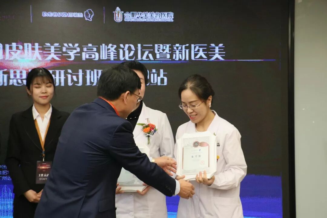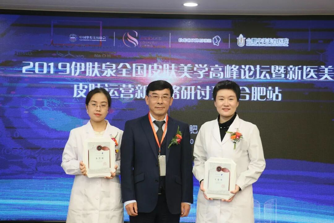 同时,此次学术交流会上,中国整形美容协会微创与皮肤分会微针专业委员会副主任委员李大铁教授向合肥华美美容医院皮肤科王荣堂、秦兴利主任授予伊肤泉微针技术授证医师。